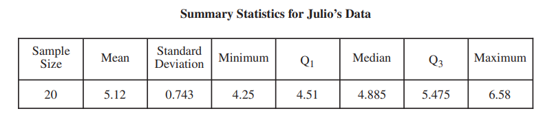 (ii) Using your response to (d-i) and the preceding requirements, is the normality condition satisfied for Julio’s data? Explain your response.