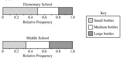 A local middle school also decided to sell bottles as a fund-raiser, using the same three sizes (small, medium, and large). The middle school students sold three times the number of bottles that the elementary school students sold. For the middle school students, the proportion of bottles sold was equal for all three sizes.