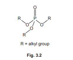 (d) H₃PO₄ also reacts with alcohols to form organophosphates. Organophosphates are compounds similar to esters. They have the general structure shown in Fig. 3.2.