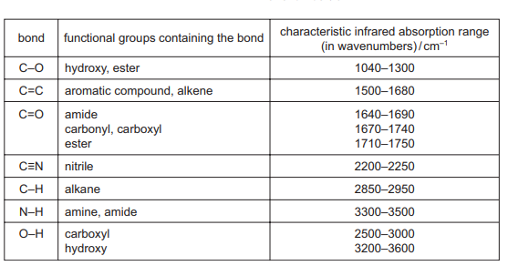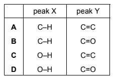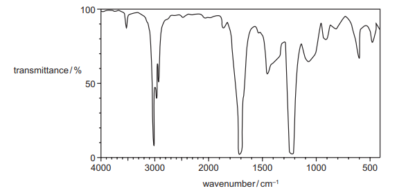 A sample of but-2-enoic acid, CH₃CH=CHCOOH, is analysed using infrared spectroscopy. The infrared spectrum shows a broad peak in the range 2500–3000 cm⁻¹.