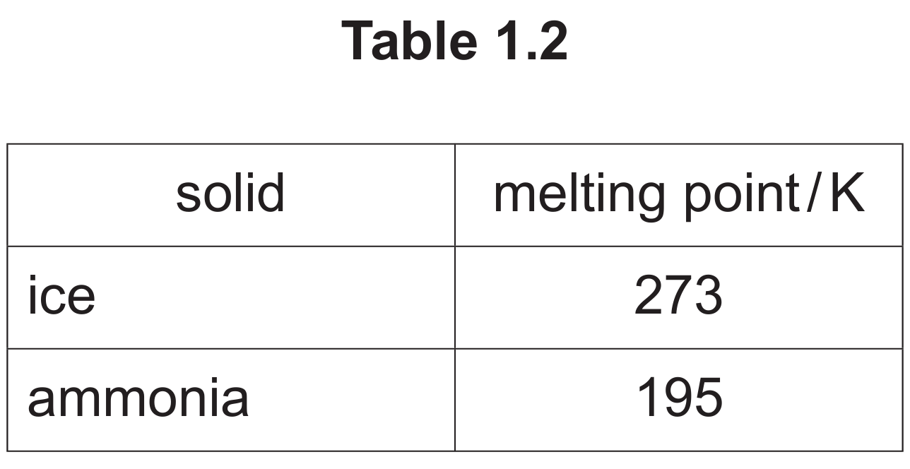 (b) (v) The melting points of ice and ammonia are shown in Table 1.2.