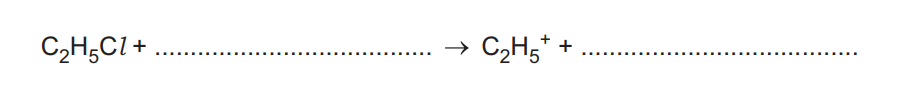 (a) Complete the equation for the reaction of \(C_2H_5Cl\), with this catalyst to form \(C_2H_5^+\) as one product.