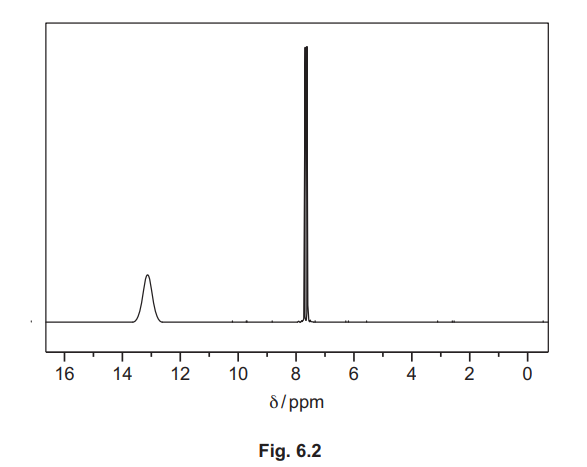 (iv) When \(D_2O\) is used as a solvent, the spectrum obtained is different from the spectrum in Fig. 6.2. Describe this difference and explain your answer.