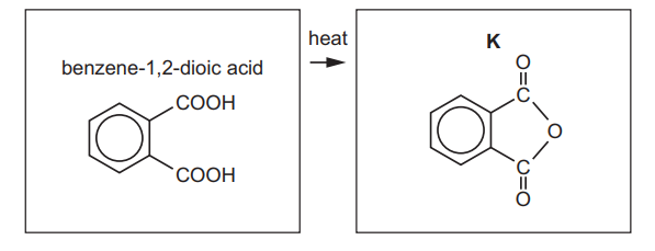 (e) Benzene-1,2-dioic acid can be used to produce K.
