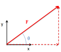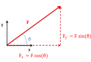 \( \mathrm{F_x = F\cos\theta, \quad F_y = F\sin\theta} \)