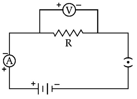 Draw and describe a circuit to measure the resistance of a resistor using an ammeter and a voltmeter.