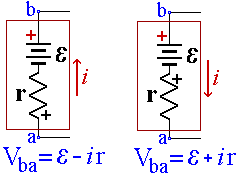 - When a current \( \mathrm{I} \) flows, some of the energy supplied by the source is lost as heat in its internal resistance.