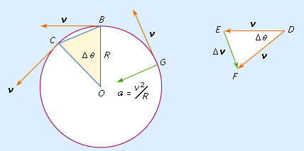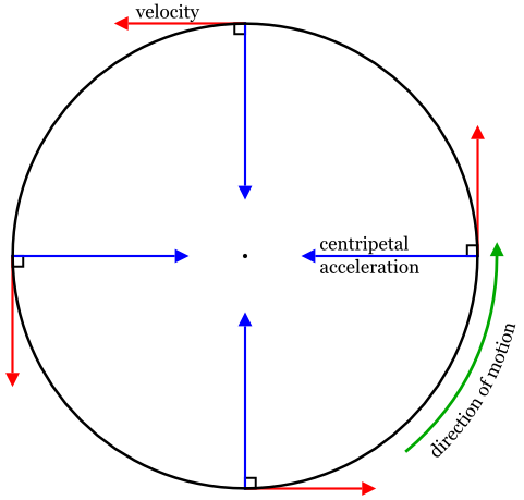 When an object moves in a circle at a constant speed, its direction of velocity continuously changes. This change in direction produces an acceleration directed towards the centre of the circle — called the centripetal acceleration.