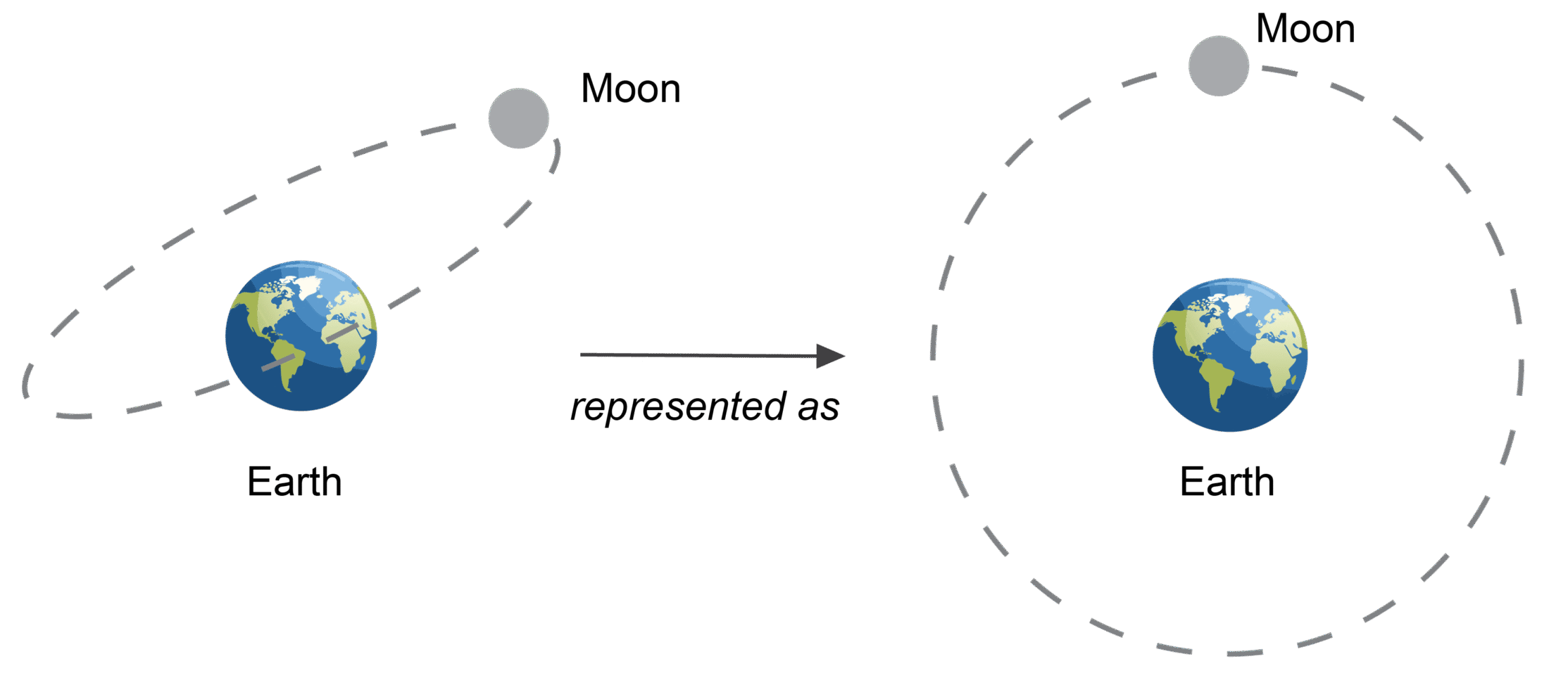 Interpretation: This mutual force keeps the Moon in orbit around Earth — acting as the centripetal force for its circular motion.