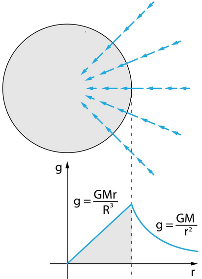 - understand that, for a point outside a uniform sphere, the mass of the sphere may be considered to be a point mass at its centre