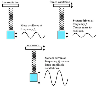 - understand that resonance involves a maximum amplitude of oscillations and that this occurs when an oscillating system is forced to oscillate at its natural frequency