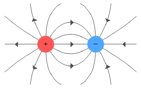 - Close to the charges, lines are dense → field is strong.