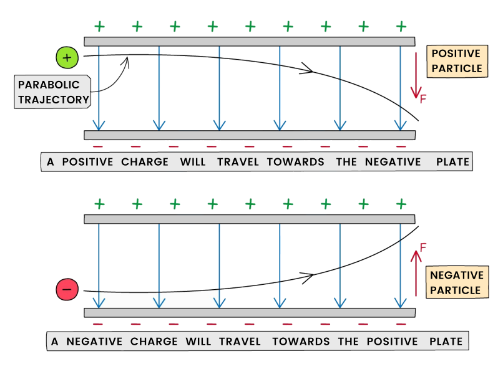 - A negative charge experiences a force opposite to the field direction.