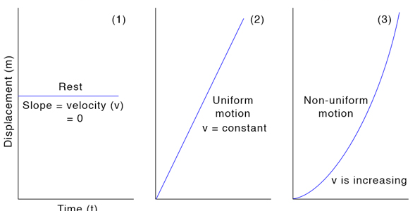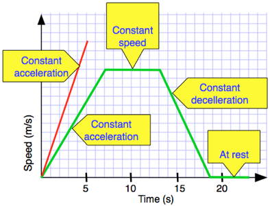 - use graphical methods to represent distance, displacement, speed, velocity and acceleration