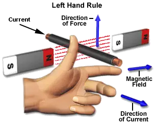 Given by the left-hand rule (Fleming’s left-hand rule): Thumb → Force First finger → Field Second finger → Current (All at right angles)