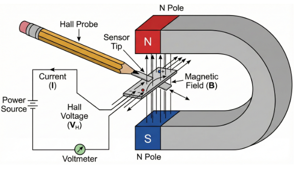 - The reading changes sign depending on field direction (north–south reversal).