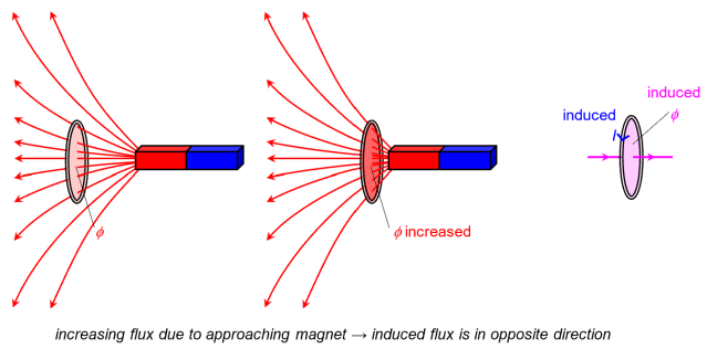 - If flux increased, induced e.m.f. acts to oppose this increase → creates a field opposing the applied field.