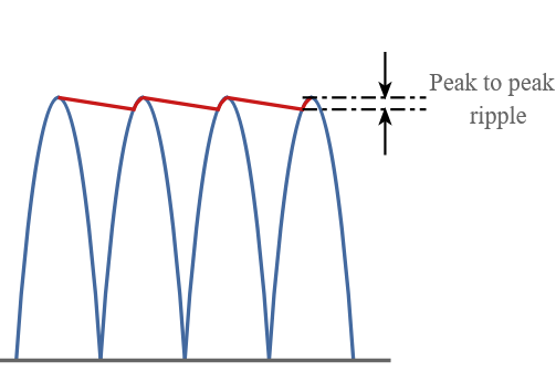 - When the rectified voltage falls (between peaks), the capacitor discharges slowly through the load.