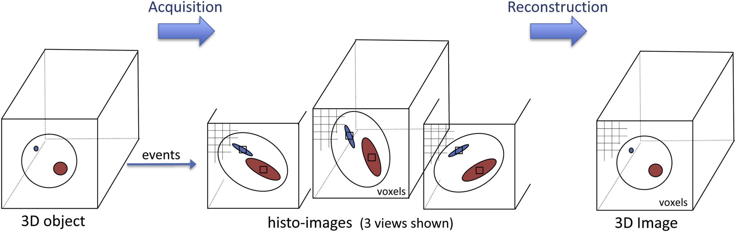 - Repeating this for millions of events reconstructs a detailed 3D image of tracer distribution.