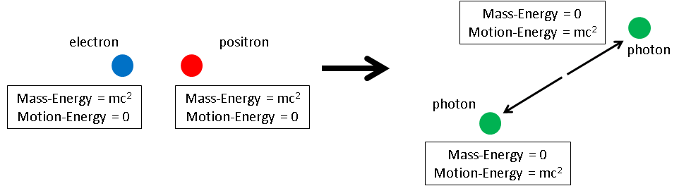 Their mass is converted into energy in the form of photons, and the process obeys the laws of mass–energy conservation and momentum conservation.