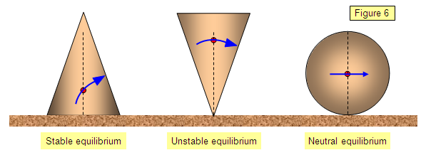 Compare the stability of a cone standing on its base and the same cone standing on its tip.