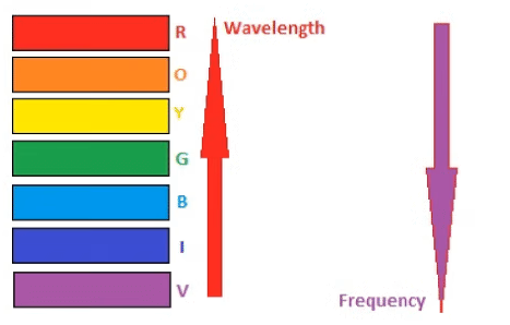Order of Colours by Increasing Wavelength (and Decreasing Frequency):