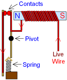 - Uses electromagnetism or a bimetallic strip to detect excess current and break the circuit.