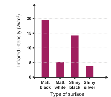 - Black, dull surfaces absorb infrared radiation better than shiny or white ones.
