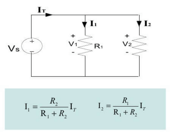 - The total current from the source is equal to the sum of the currents in each branch: