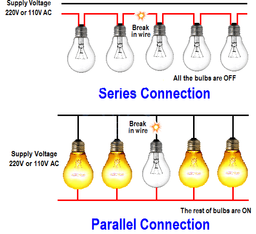 | If One Component Fails | Whole circuit stops working | Other branches continue to work |