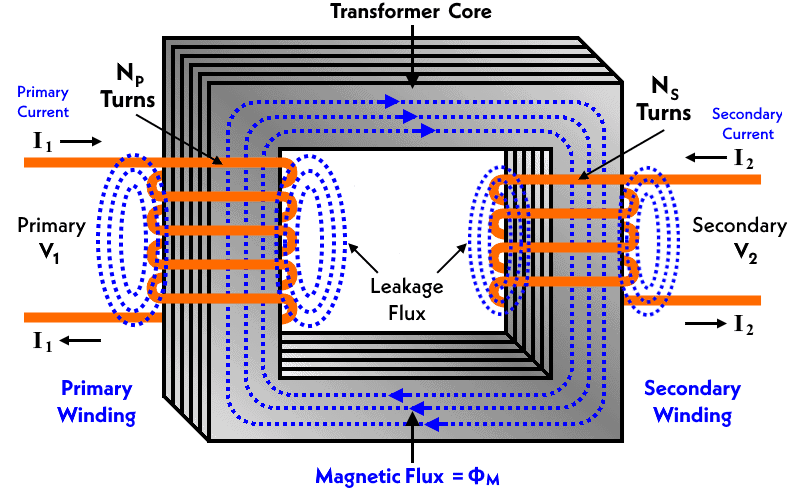 - Magnetic Flux: Travels through the iron core from primary to secondary