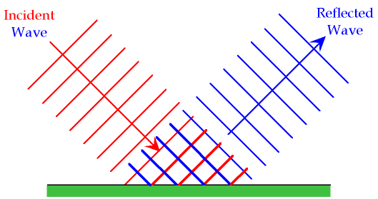 Conclusion: In reflection at a plane surface, angle of incidence = angle of reflection, and wave properties do not change.