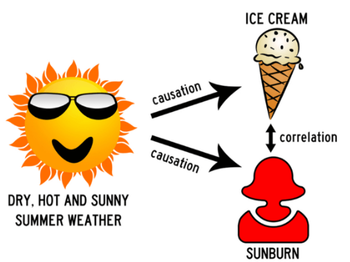 Ice cream sales and drowning incidents both increase during summer months. Does ice cream consumption cause drowning?