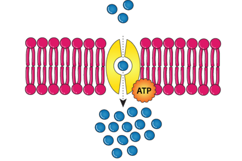 - Definition: The movement of substances against the concentration gradient (from low → high concentration) using energy (ATP).