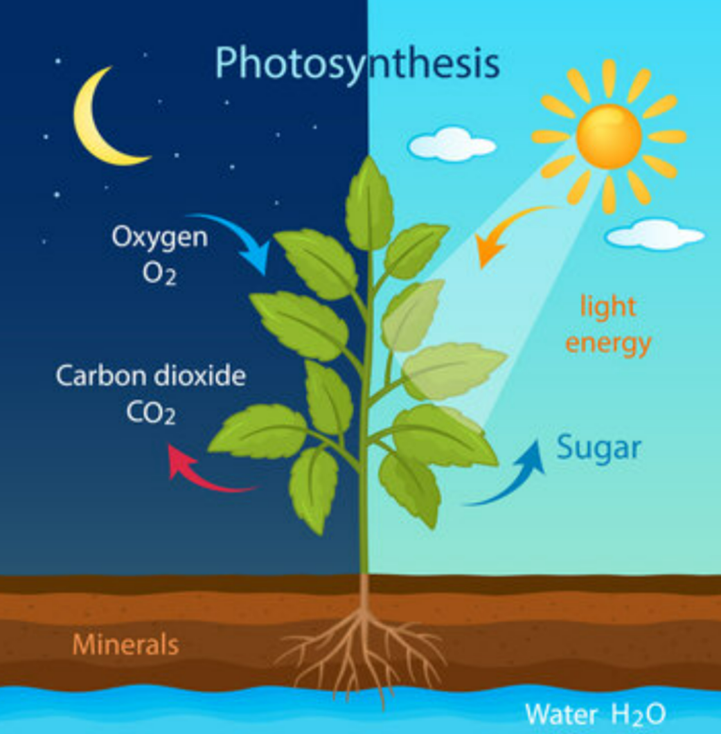 | Day (light) | Respiration + Photosynthesis | O₂ out, CO₂ in | Photosynthesis > Respiration |