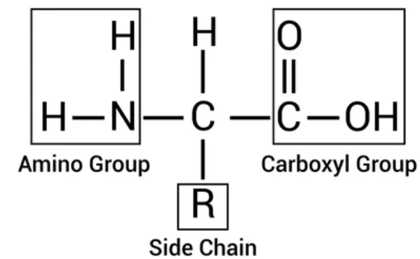 - ~20 different amino acids → joined in sequences to make different proteins.