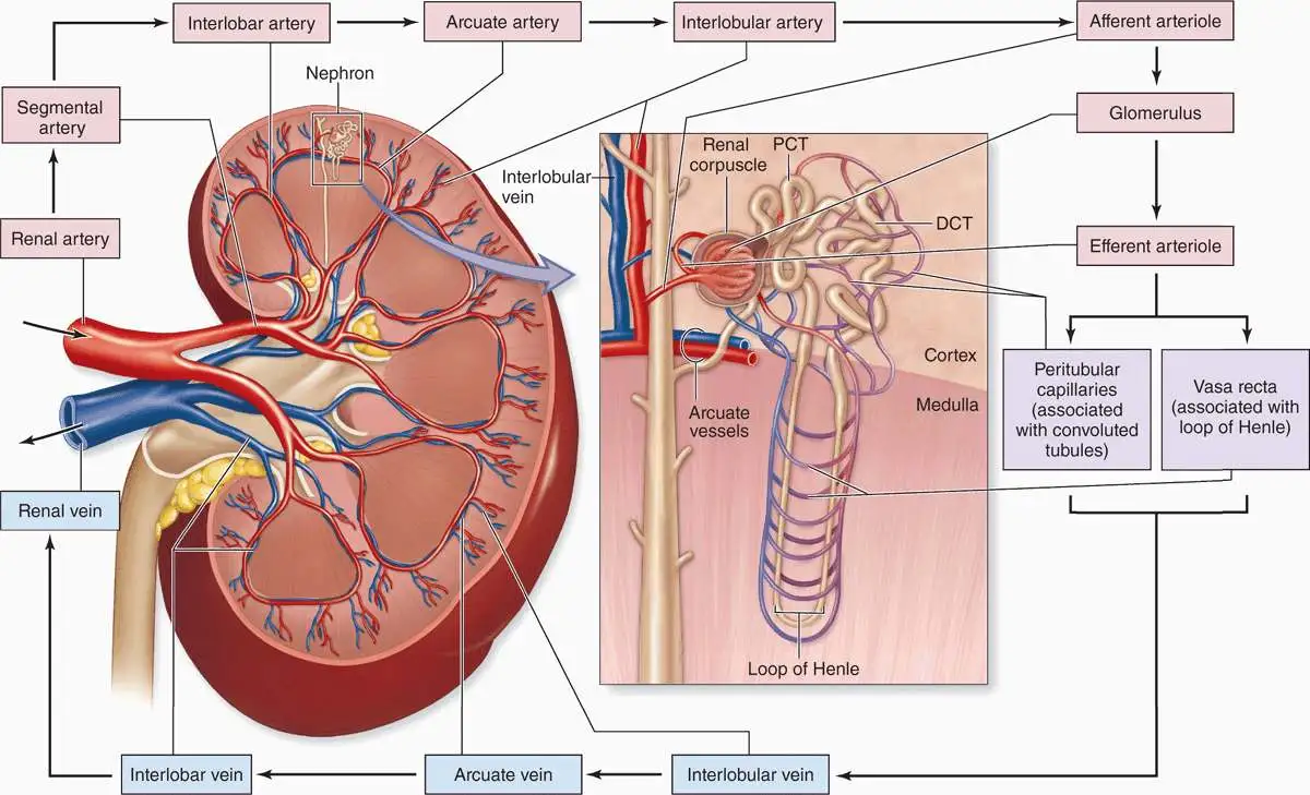 - Renal veins → return deoxygenated, filtered blood → vena cava.