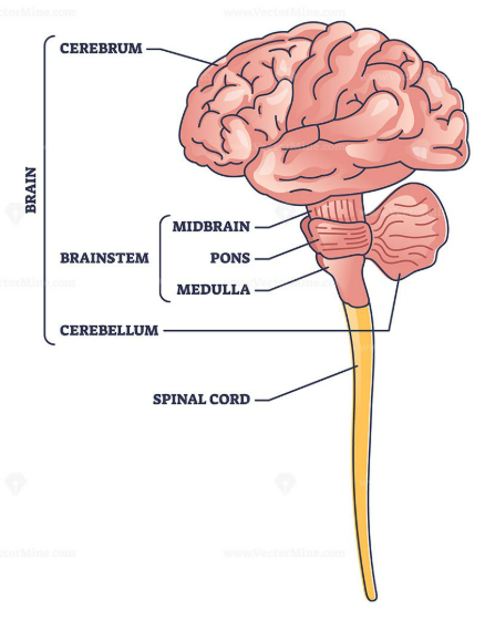 - Spinal cord → carries signals to/from brain, controls reflexes