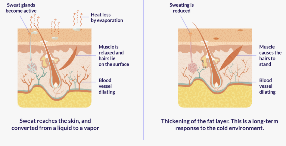 – Sweating → cooling by evaporation.