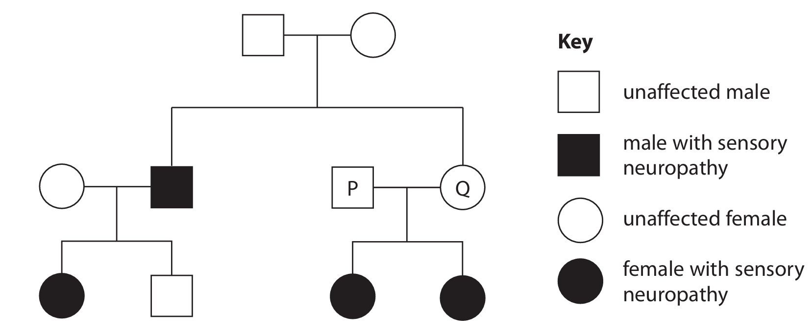 The diagram shows a family pedigree for an inherited condition.