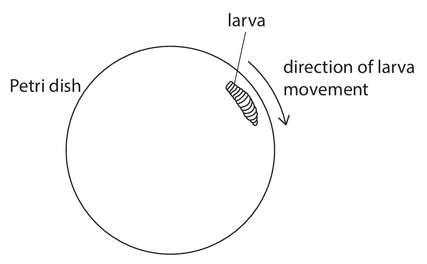 Fly larvae will continuously move around the edge of a Petri dish when placed under a lamp.