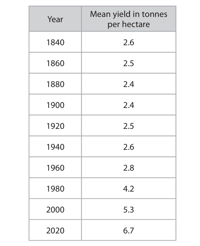 | M1 | Measure mass / weight (of crop) / mass / weight of fruit / mass / weight of grain / number of fruits / number of grains / number of leaves / size of leaves / eq | 1 |