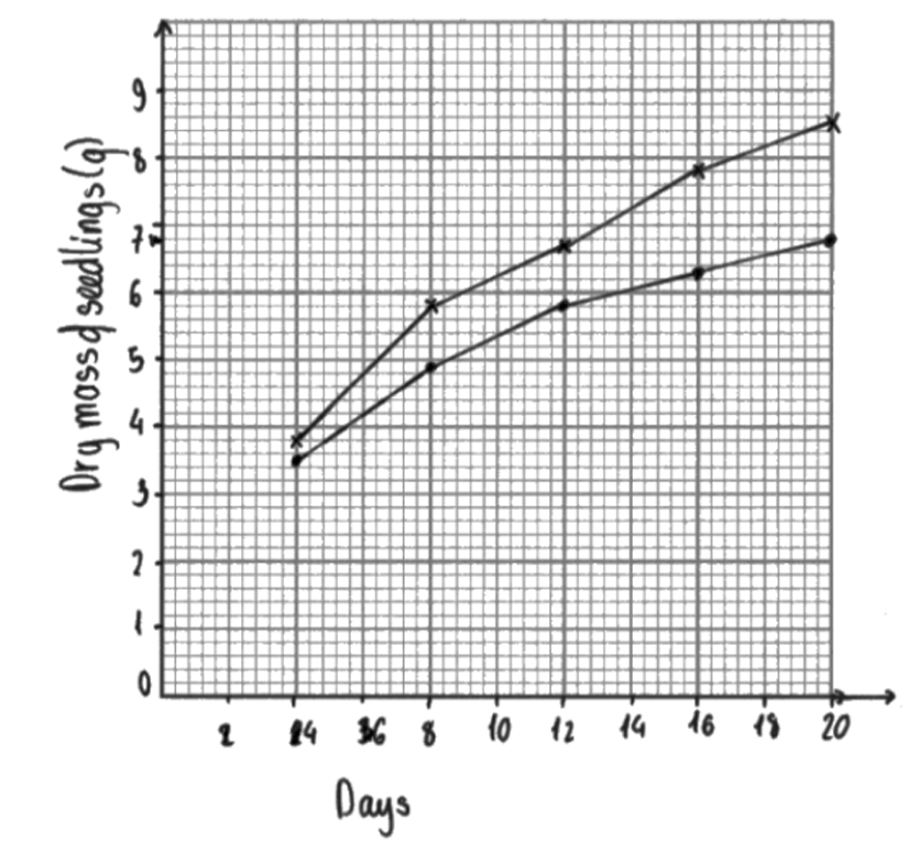 | S | Same light (intensity) / light duration / same sun(light) / same time of year / same carbon dioxide concentration / mineral ions / water / soil / pH / humidity / eq (Any two for 1 mark) | 1 |