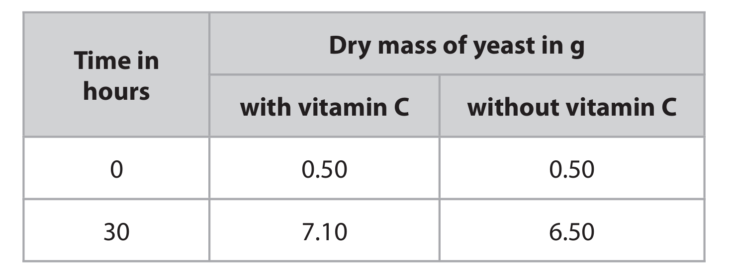 (a) (i) Which row of the table is correct for this yeast cell?
