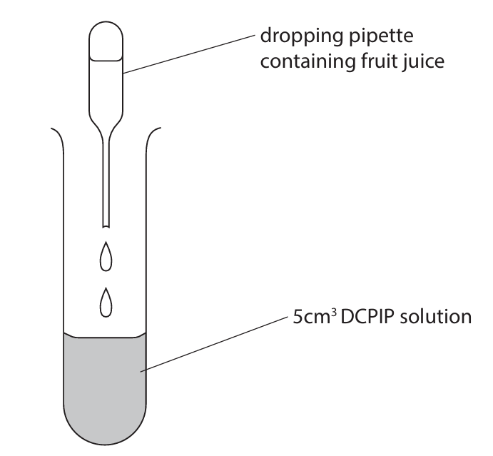 - record the number of drops of fruit juice added until the DCPIP solution turns colourless