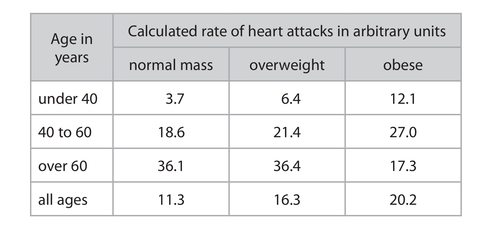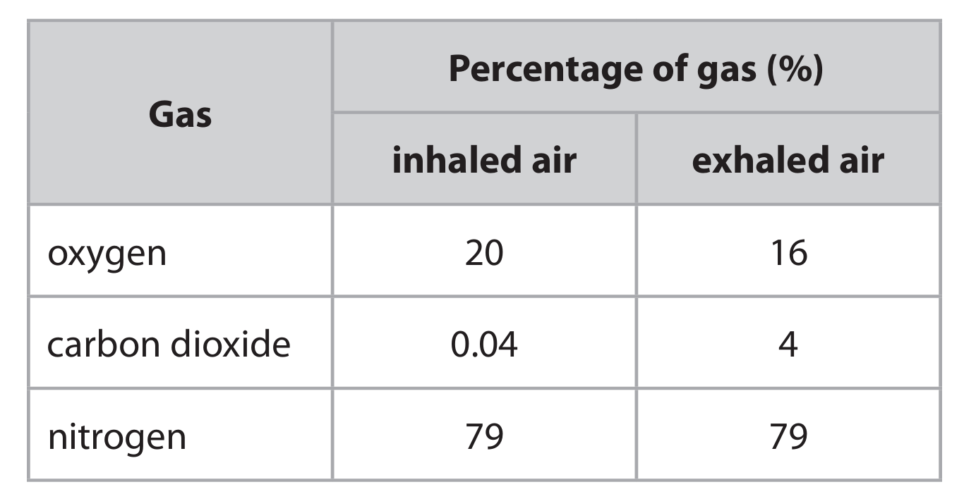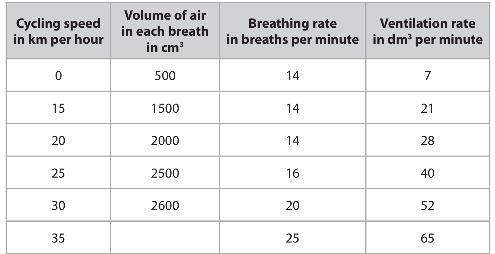 (b) A scientist compared the rate at which oxygen is used during exercise by a person who is a non-smoker with a person who is a smoker. The rate is measured in cm³ per minute for each kilogram of body mass. The table shows the scientist’s results.