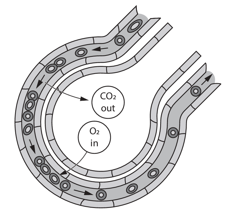 At the end of these narrow tubes are air sacs called alveoli.