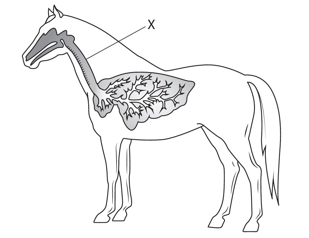 The diagram shows parts of the human respiratory system with some structures labelled.