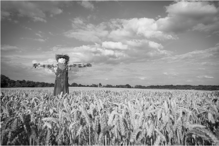 Scarecrows are models of humans placed into fields to stop birds eating crops.