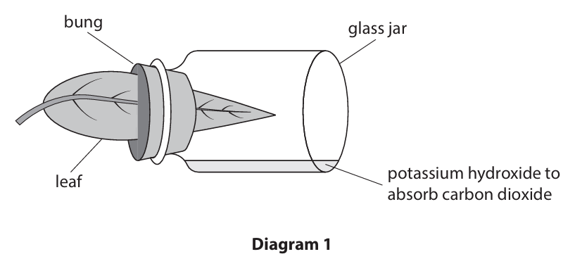 (ii) After the starch has been removed from the leaves, the student uses the apparatus in diagram 1 to prevent carbon dioxide from reaching part of one of the leaves.